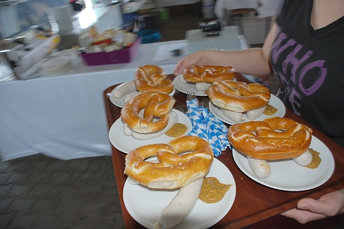 Beim Festempfang wurden die geladenen Gäste von uns und dem Wasserhaus Treff mit Weißwürsten und Brezen verköstigt. |